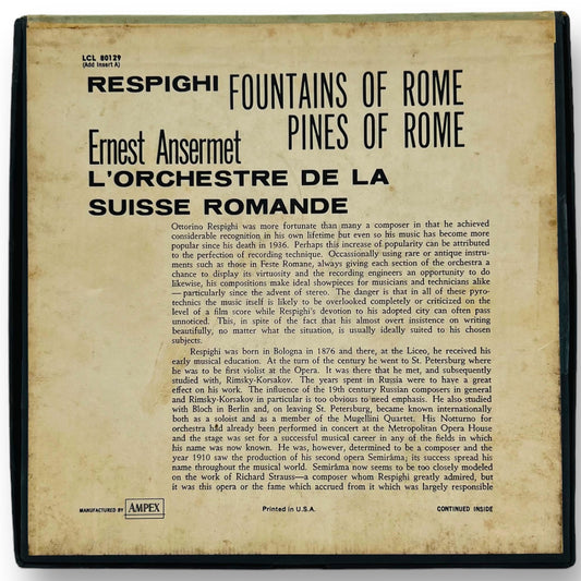 Respighi Fountains Of Rome Pines Of Rome Ansermet Reel to Reel Tape 7.5"London
