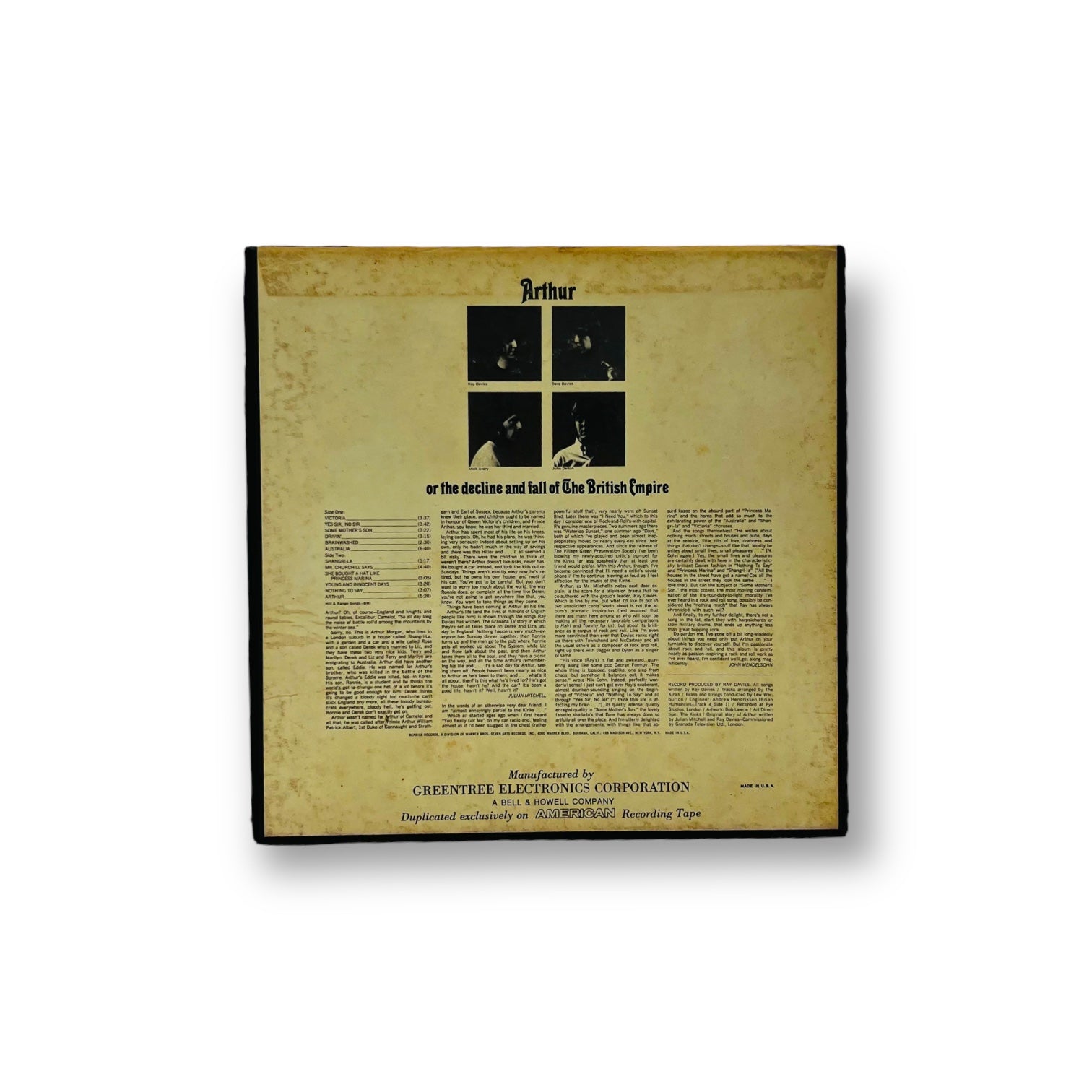 Arthur The Kinks Reel to Reel Tape 3 3/4 IPS Reprise