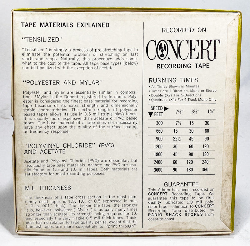 - Tape Speed: 4 Track, Stereo, 3 3/4 IPS