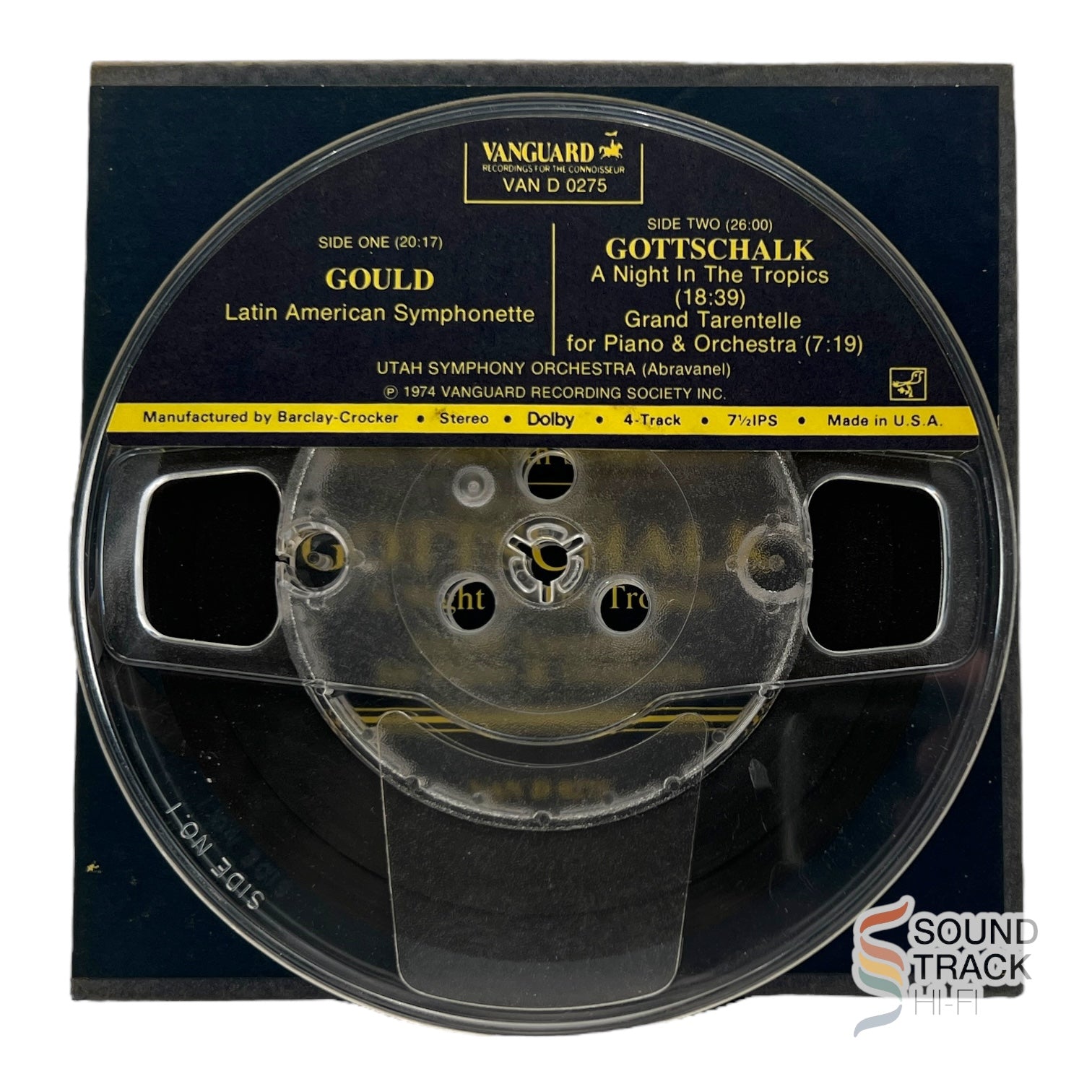 Turn up the heat and cue the reels—this Gould: Latin American Symphonette and Gottschalk: A Night in the Tropics by the Utah Symphony Orchestra, conducted by the legendary Maurice Abravanel, is like a first-class ticket to a mid-century musical vacation… no sunscreen required. Recorded in the glorious analog era when stereo was king and magnetic tape was the audiophile’s playground, this reel-to-reel delivers crisp brass, lush strings, and a rhythm section that practically dances off the heads. Gould’s Symphonette serves up jazzy, Latin-inspired swagger, while Gottschalk’s tropical fantasy wraps you in warm Caribbean breezes and carnival colors. Perfect for hi-fi collectors, symphony buffs, and anyone who thinks a “night in the tropics” sounds best at 7½ ips with a little tube warmth and a dash of tape hiss. This isn’t just music—it’s an exotic sonic postcard from the golden age of stereo.