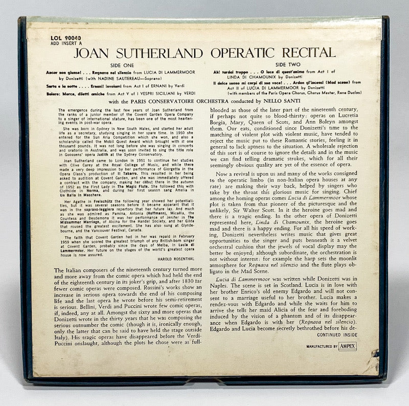 Joan Sutherland Operatic Recital Nello Santi Reel to Reel Tape 7 1/2 IPS London