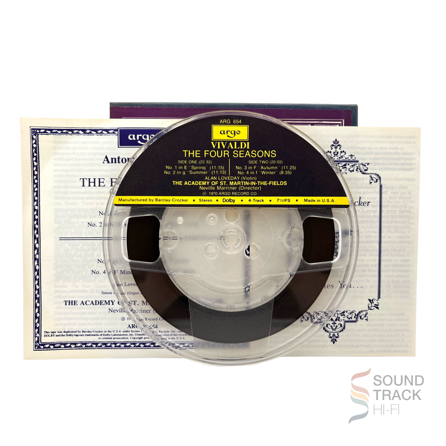 Calling all music enthusiasts! Get ready to embark on an extraordinary auditory journey with our Vivaldi: Four Seasons by the Academy Of St. Martin-In-The-Fields conducted by the legendary Neville Marriner - now available on Reel to Reel Tape! Transport yourself back to the baroque era, where Vivaldi's timeless compositions first graced the world stage. From the gentle whispers of spring to the fiery intensity of summer, from the playful dance of autumn to the chilling embrace of winter, each note paints a vivid musical landscape. Recorded with unparalleled precision by the esteemed Academy Of St. Martin-In-The-Fields, under the guidance of maestro Neville Marriner, this reel-to-reel tape adds a touch of vintage sophistication to your modern sound system. Dust off your reel-to-reel player, embrace the retro vibes, and prepare to be swept away by centuries of musical brilliance. Whether you're a seasoned classical aficionado or just looking to elevate your collection, this tape is the epitome of timeless elegance and nostalgic charm. Don't miss your chance to own a piece of musical history - Vivaldi beckons you!