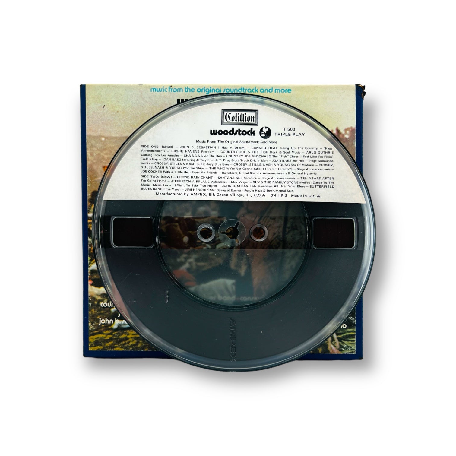 Up for sale is a vintage copy of Woodstock Soundtrack to Reel Tape. Don't miss out on your chance to grab this rare reel to reel tape.